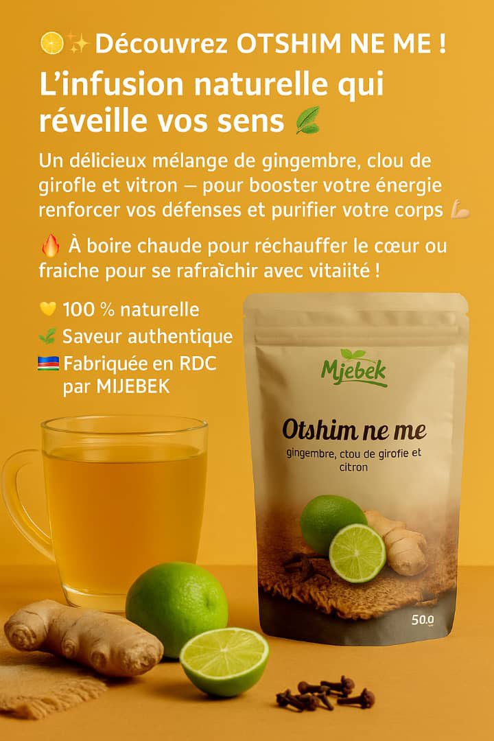 Otshim ne me est de l’infusion de gingembre et clou de girofle au citron déshydraté et moulu.